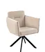 De draaibare zwartmetalen pootconstructie voegt een eigentijdse touch toe en garandeert stabiliteit én flexibiliteit, ideaal voor zowel de eetkamer als de werkkamer. Deze stoel combineert vorm en functie op harmonieuze wijze en is een statement piece voor wie houdt van stijlvol wonen.
