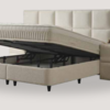 De royale opbergbox onder het bed is eenvoudig toegankelijk via het metalen liftmechanisme en biedt een praktische oplossing voor het netjes opbergen van beddengoed en accessoires. In combinatie met de bijpassende nachtkastjes vormt het Conso bed een harmonieus geheel waarin functionaliteit en luxe naadloos samenkomen.
