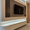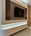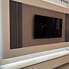 De centrale decorplaat is een ware blikvanger, afgewerkt met verfijnde verticale panelen die diepte en karakter toevoegen aan het geheel. De panelen geven de cinewall een luxueuze en eigentijdse uitstraling.