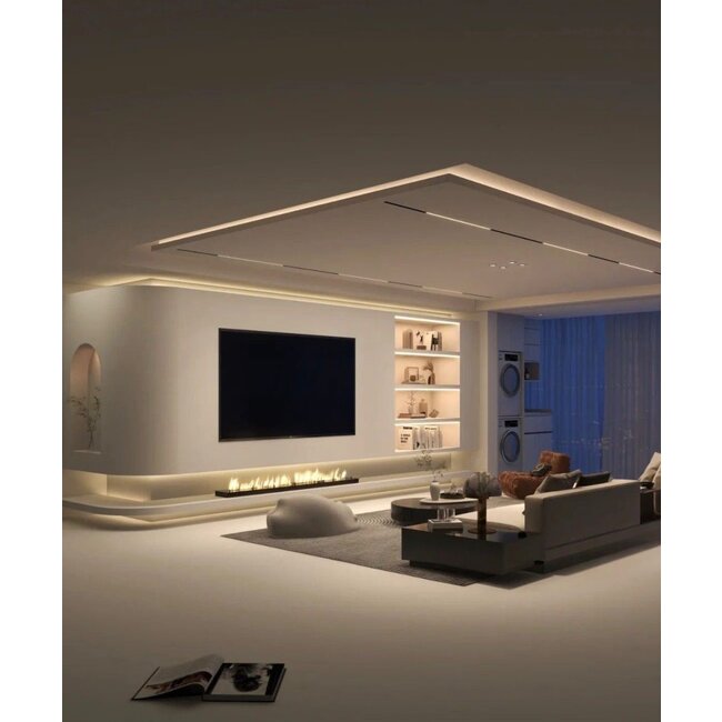 De bio-ethanol haard voegt niet alleen warmte en een huiselijke sfeer toe aan de kamer, maar is ook een milieuvriendelijke optie omdat deze geen rook, geur of as produceert. Door te kiezen voor ronde vormen in de Cinewall, kun je een zachte en uitnodigende uitstraling creëren die een mooi contrast vormt met de moderne strakheid van de wand.
