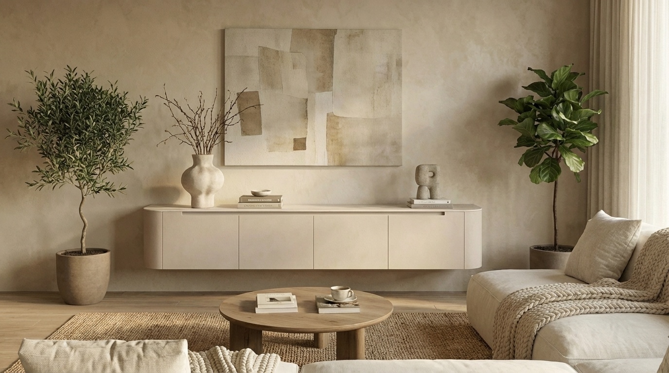 Ben je op zoek naar een meubel dat direct sfeer brengt in je woonkamer? Deze beige designkast is hét antwoord. Met zijn zachte kleur en afgeronde hoeken past hij perfect in een modern of Japandi interieur. Het ontwerp is rustig en greeploos, waardoor je kamer ruimtelijker en opgeruimd oogt.
