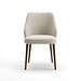 Warm hout en zachte stof De Rydal valt op door zijn prachtige onderstel van massief ogend hout met een donkere, warme afwerking. De taps toelopende poten geven de stoel een slank silhouet. De zitting is royaal gevuld en bekleed met een stevige, beige gemêleerde stof die zacht aanvoelt. De rugleuning loopt aan de zijkanten iets naar voren, wat zorgt voor een subtiel 'omarmend' gevoel en extra steun in de rug.